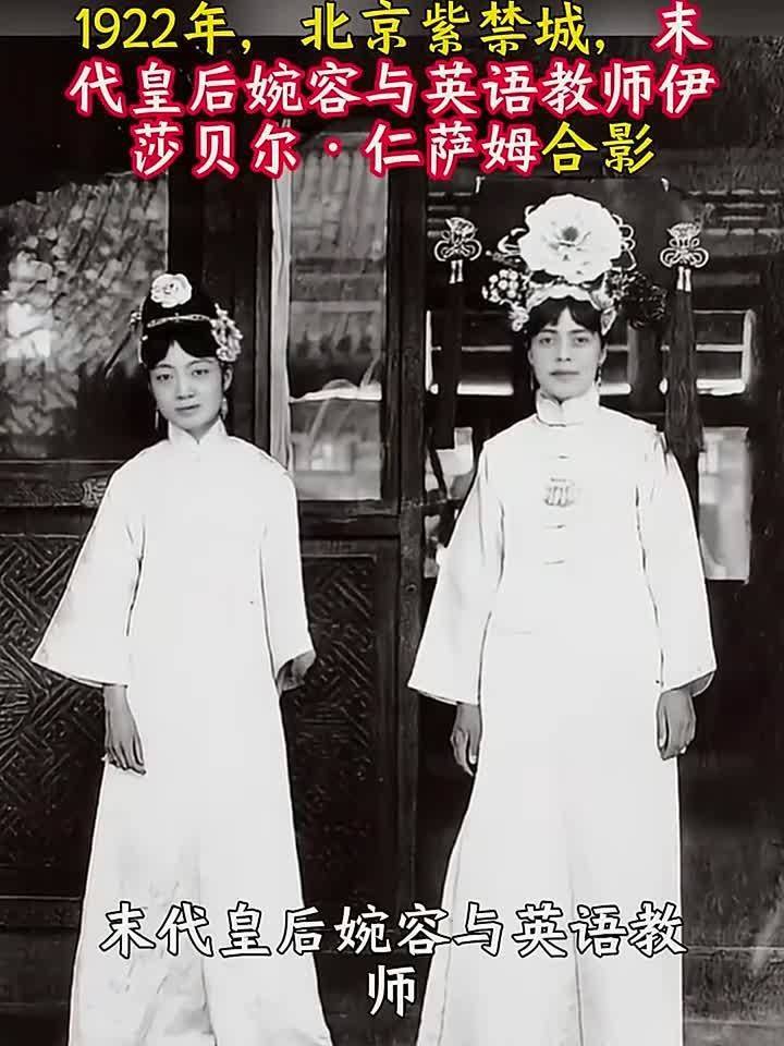 老照片里的婉容确实担得起“才色惊艳”四个字。她出身于内务府大臣荣源家,自幼接受中西合璧教育,不仅通读《红楼梦》,还能说一口流利的英语。大婚次年,她在紫禁城的御花园里拍下一张特殊合影:照片中她穿着收腰洋裙,左手轻搭在英语老师伊莎贝尔·任萨姆的肩上,两人对着镜头露出微笑。这位来自英国的女教师,不仅教会婉容用英文写日记,还带来了留声机、西洋镜,让深宫里的皇后第一次知道“下午茶”和“华尔兹”。